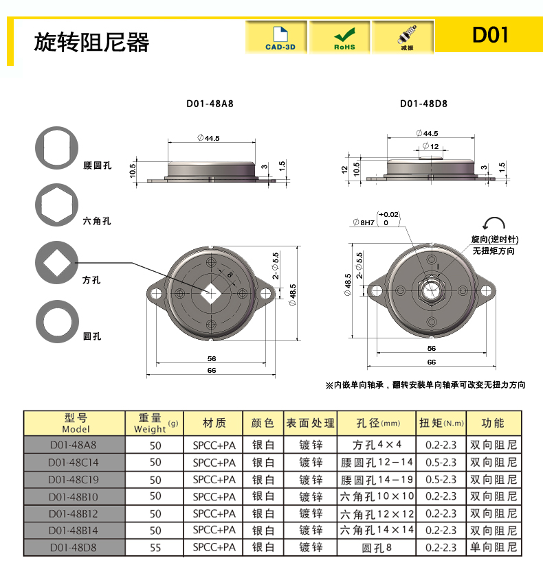 | D01-48D8 | SPCC+PA | 55.01 | Silver White | Unidirectional damping | download |