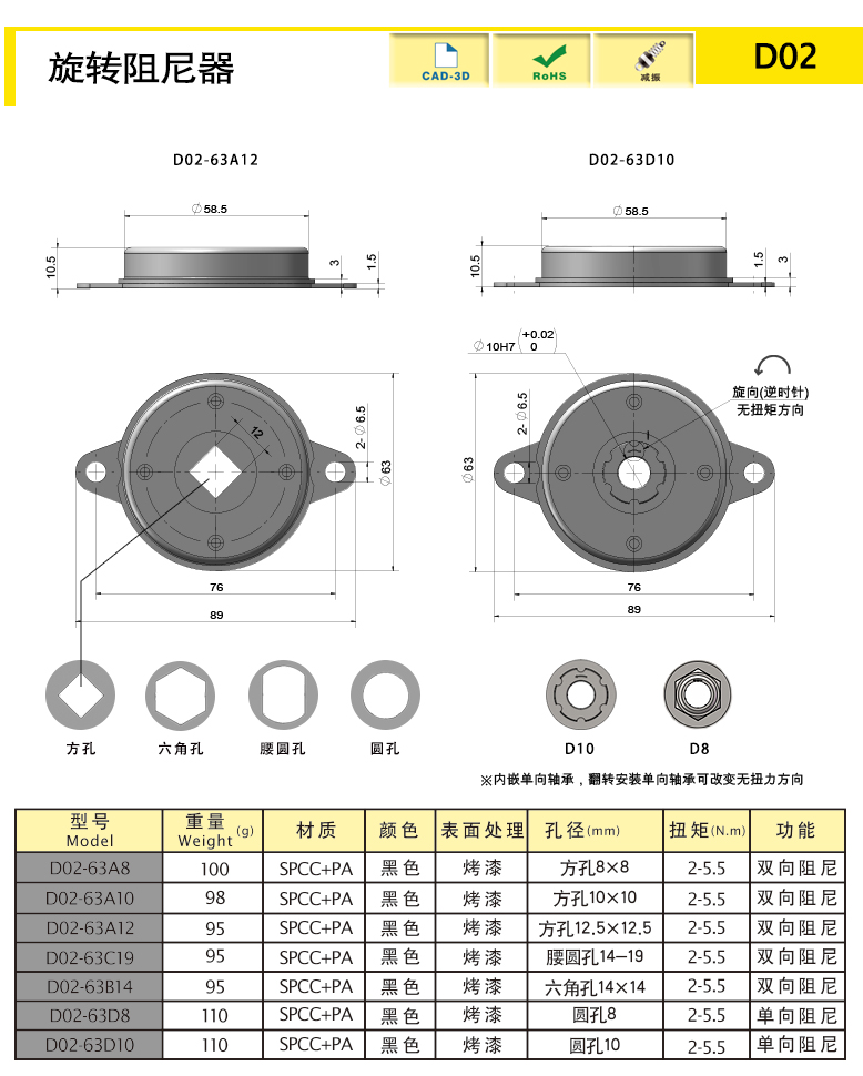 | D02-63D8 | SPCC+PA | 110.01 | Black | Unidirectional damping | download | ||||