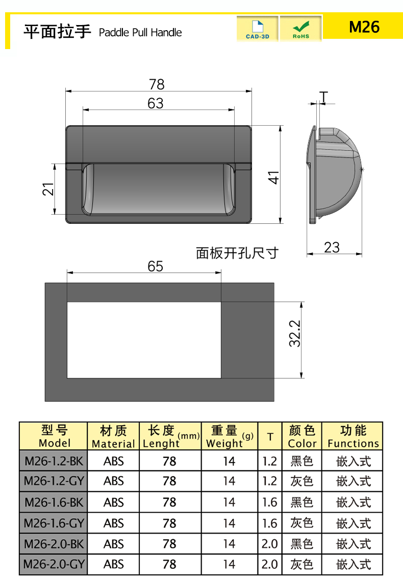 | M26-2.0-BK | ABS | 13.91 | 78 | Black | Embedded | download | ||||