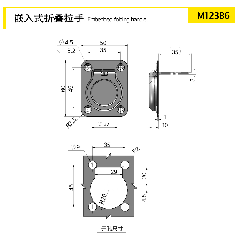 Embedded folding handle