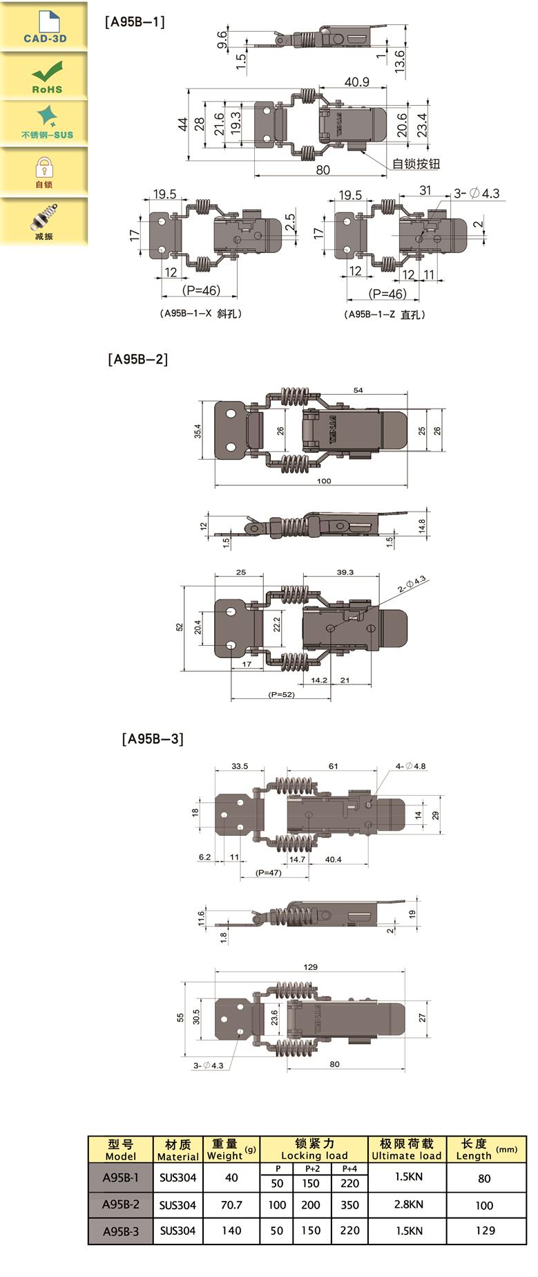 | A95B-3 | damping,self lock | 129 | SUS304 | / | 400 | download |