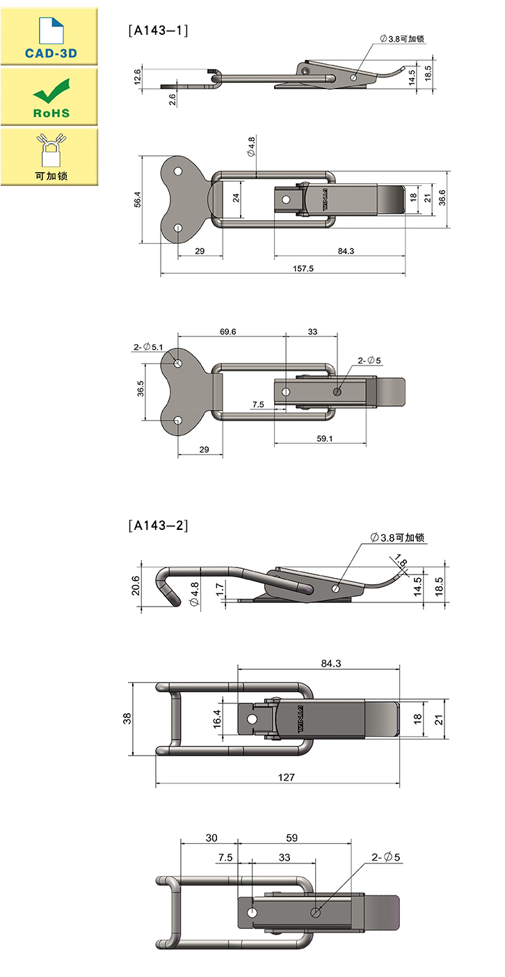 A143-2: The curved spring steel wire provides elastic preload for the buckle and has vibration reduction function
