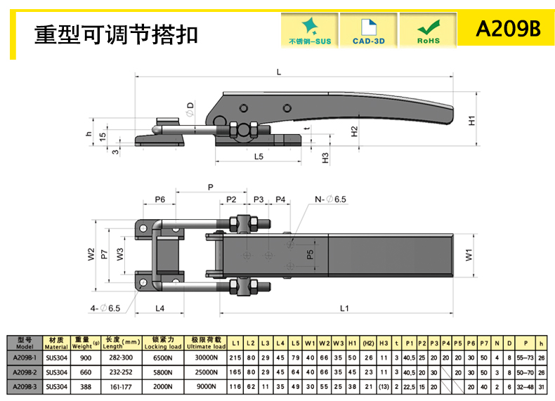 | A209B-2 | adjustable | 232-252 | SUS304 | 652.01 | 5800 | 25000 | download | ||||