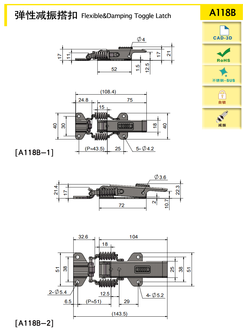 | A118B-4 | damping,self lock | 143.5 | SUS304 | 190.12 | 250/340/400 | 3500 | download |