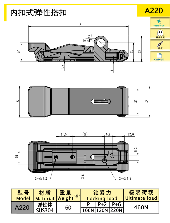 purpose:Inner toggle latch elastic toggle latch