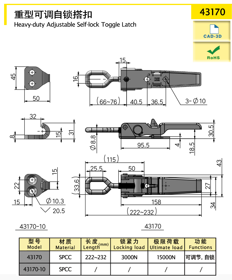 purpose:Heavy duty adjustable self-locking toggle latch