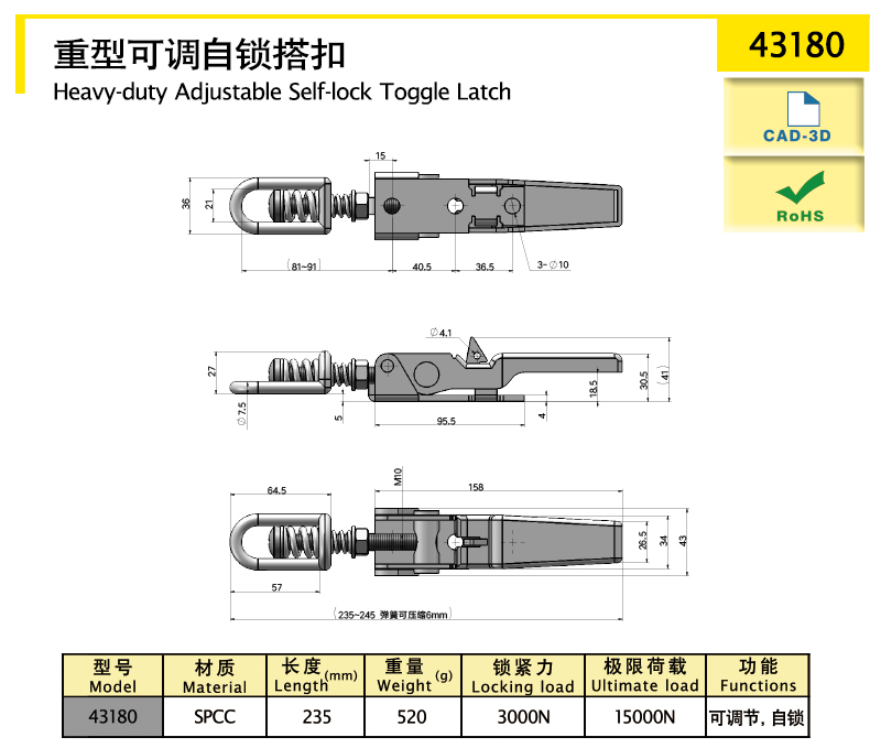 purpose:Heavy duty adjustable self-locking toggle latch