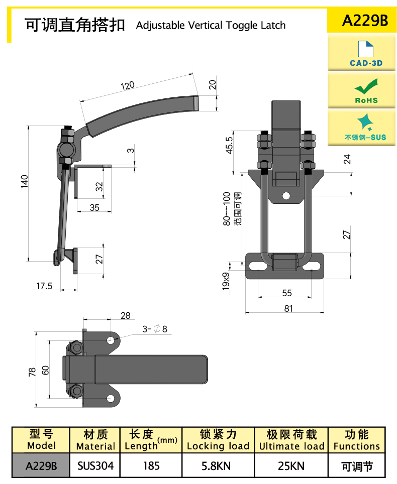 purpose:Adjustable right angle toggle latch
