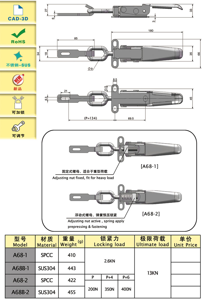 | A68-1 | adjustable,with lock | 300 | SPCC | 484.27 | 2600 | download | ||||