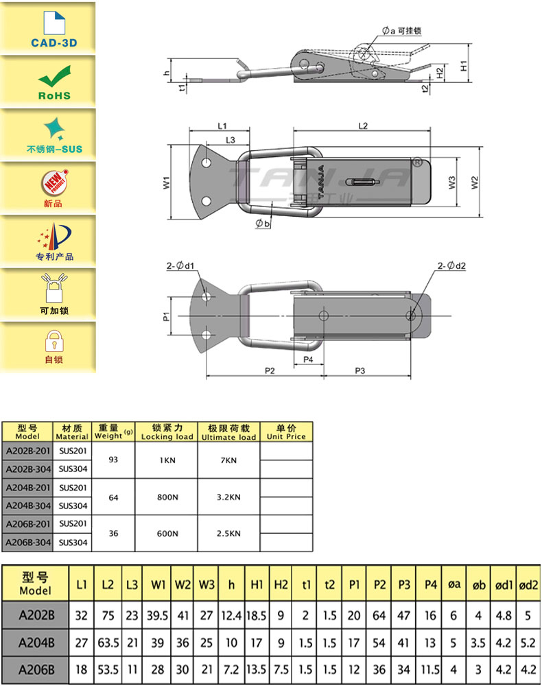 The locking nose of the buckle can not only be equipped with a lock or lead seal, but also has a humanized self-locking mechanism, which can be placed on the buckle to jump off during use, making it safer