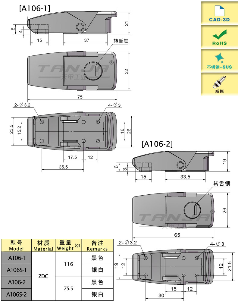 | A106-2SR | concealed,damping,with lock | 65.6 | Zinc alloy | 75.51 | download |