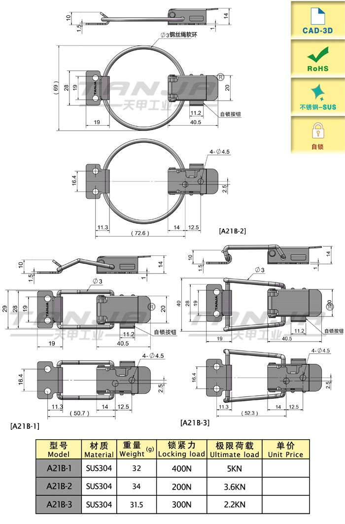A21B-2 is more suitable for object fixation, and the length of the loop can be customized