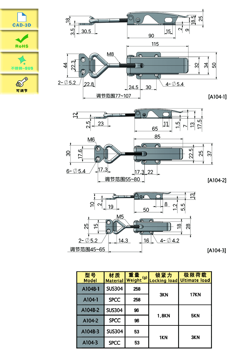 | A104B-3 | adjustable | 120 | SUS304 | 53.03 | 1000 | download | ||||