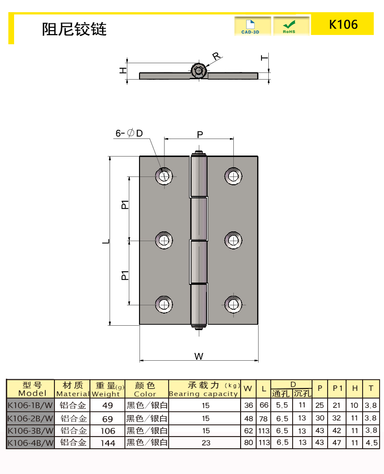 | K106-4SR | Aluminum alloy | 113 | Silver White | 120.01 | Light damping | download | ||||