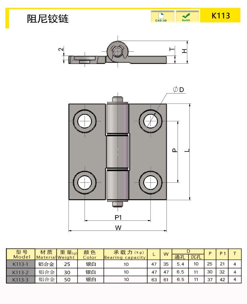| K113-1 | Aluminum alloy | 47 | Silver White | 25 | Light damping | download | ||||