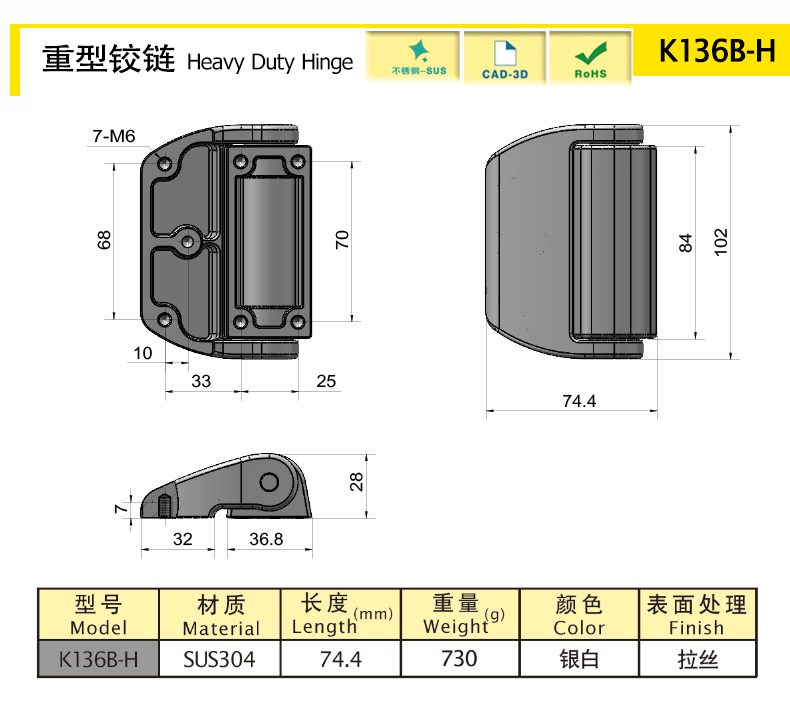 Heavy duty, SUS304 integrated casting, capable of withstanding greater shear stress