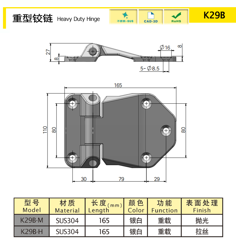 Heavy duty, SUS304 integrated casting, capable of withstanding greater shear stress
