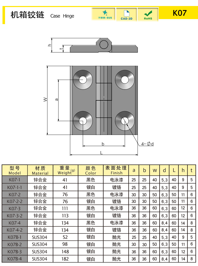 | K07ZN-4SR | Zinc alloy | 60 | Silver White | 126.41 | Light load | download | ||||