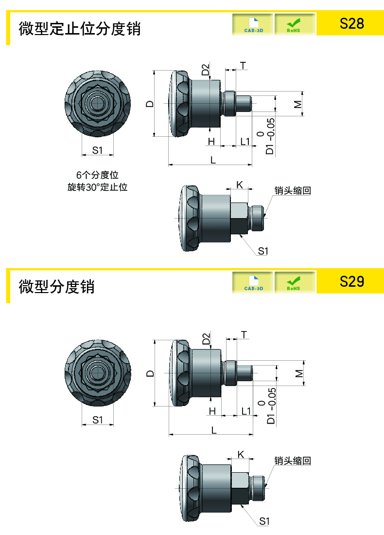 BK:把手PA,黑色,亚光饰面;销头SUS303带定止位的分度销,提起把手旋转30°可定位