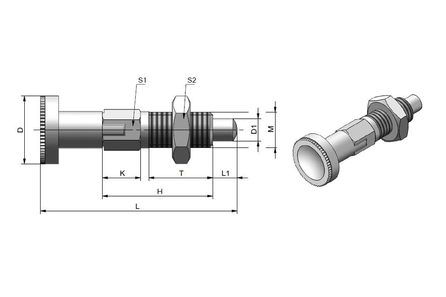 | model | material quality ![]() | D1 ![]() | D ![]() | L1 ![]() | T ![]() | M ![]() | K ![]() | Height H ![]() | S1 | Maximum load (N) ![]() | Weight (g) | 3D | Purchasing | |||