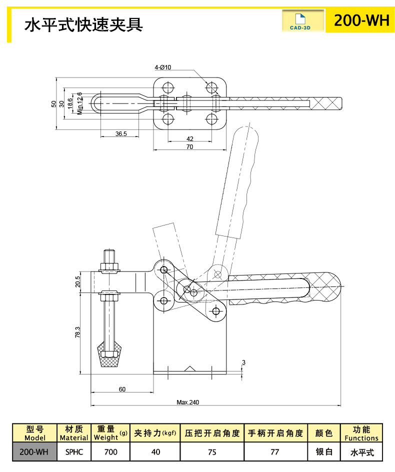 material quality Weight (g) colour function Clamping force (kgf) Clamping force (kgf)