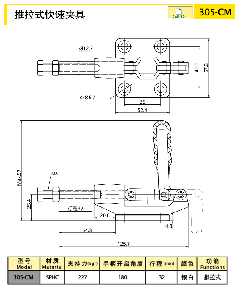 A fast clamping and quick opening mechanism designed based on the principle of mechanical four link linkage, which is flexible, smooth, and does not sway