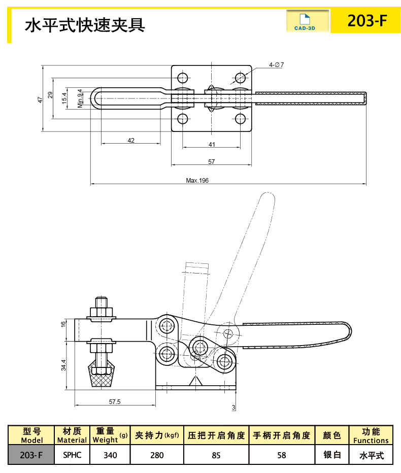 A fast clamping and quick opening mechanism designed based on the principle of mechanical four link linkage, which is flexible, smooth, and does not sway
