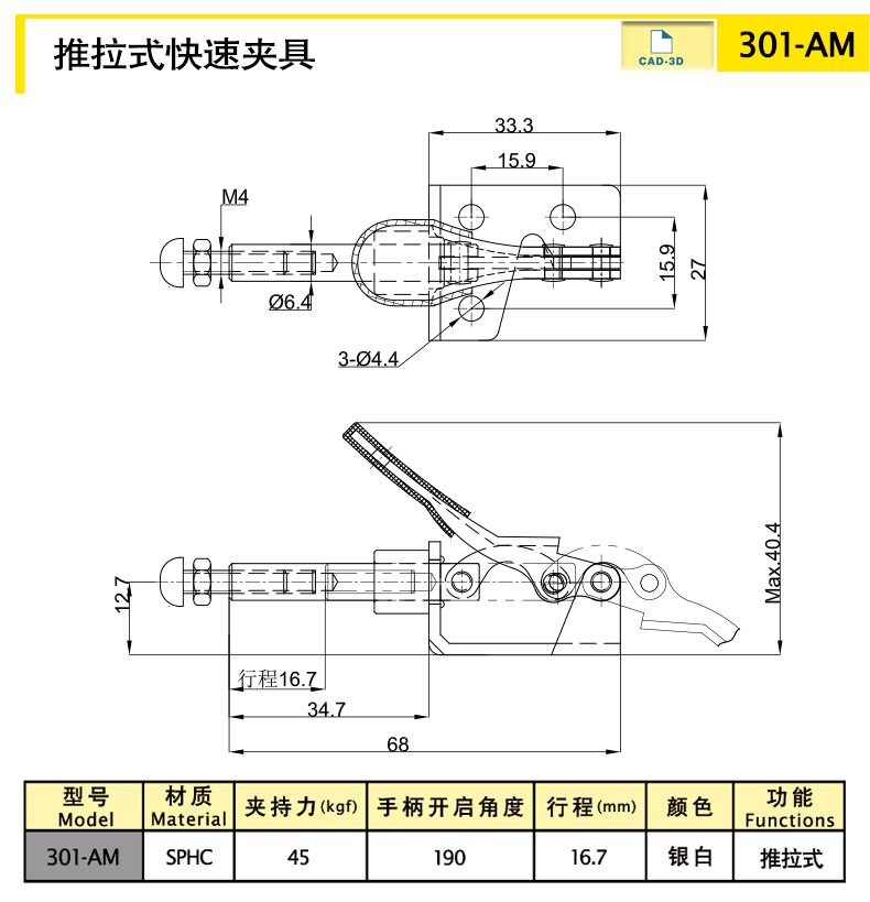 material quality Weight (g) colour function Clamping force (kgf) Clamping force (kgf)