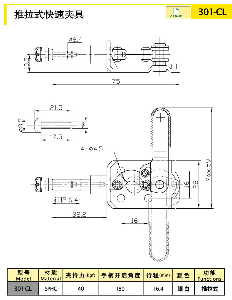 material quality Weight (g) colour function Clamping force (kgf) Clamping force (kgf)