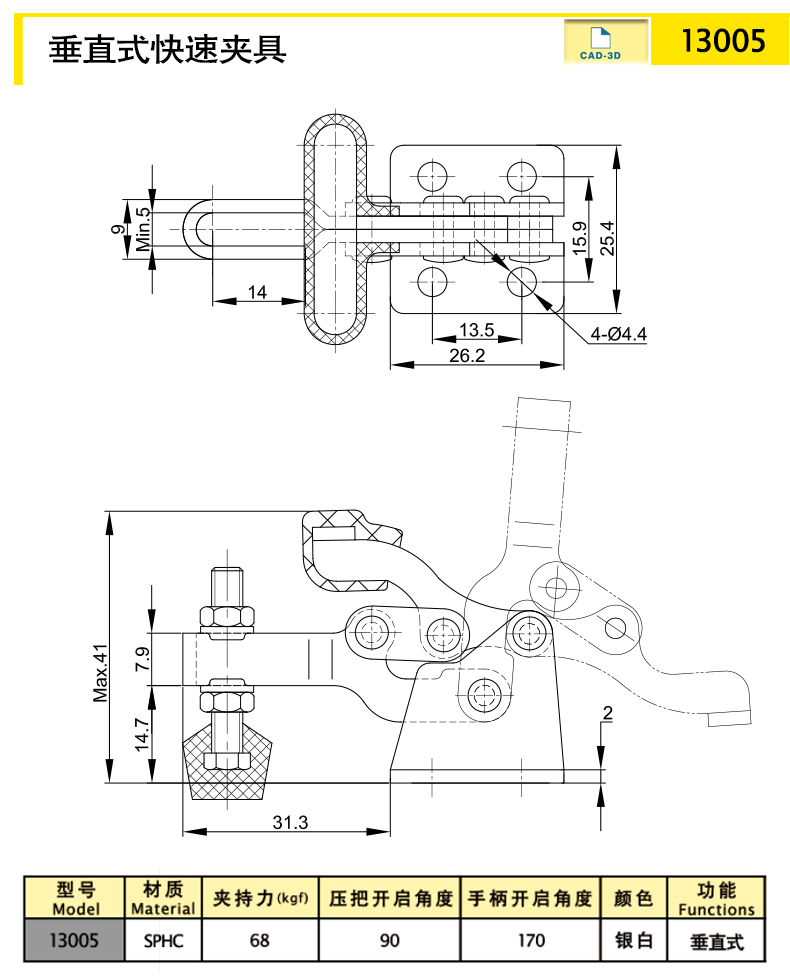 material quality Weight (g) colour function Clamping force (kgf) Clamping force (kgf)