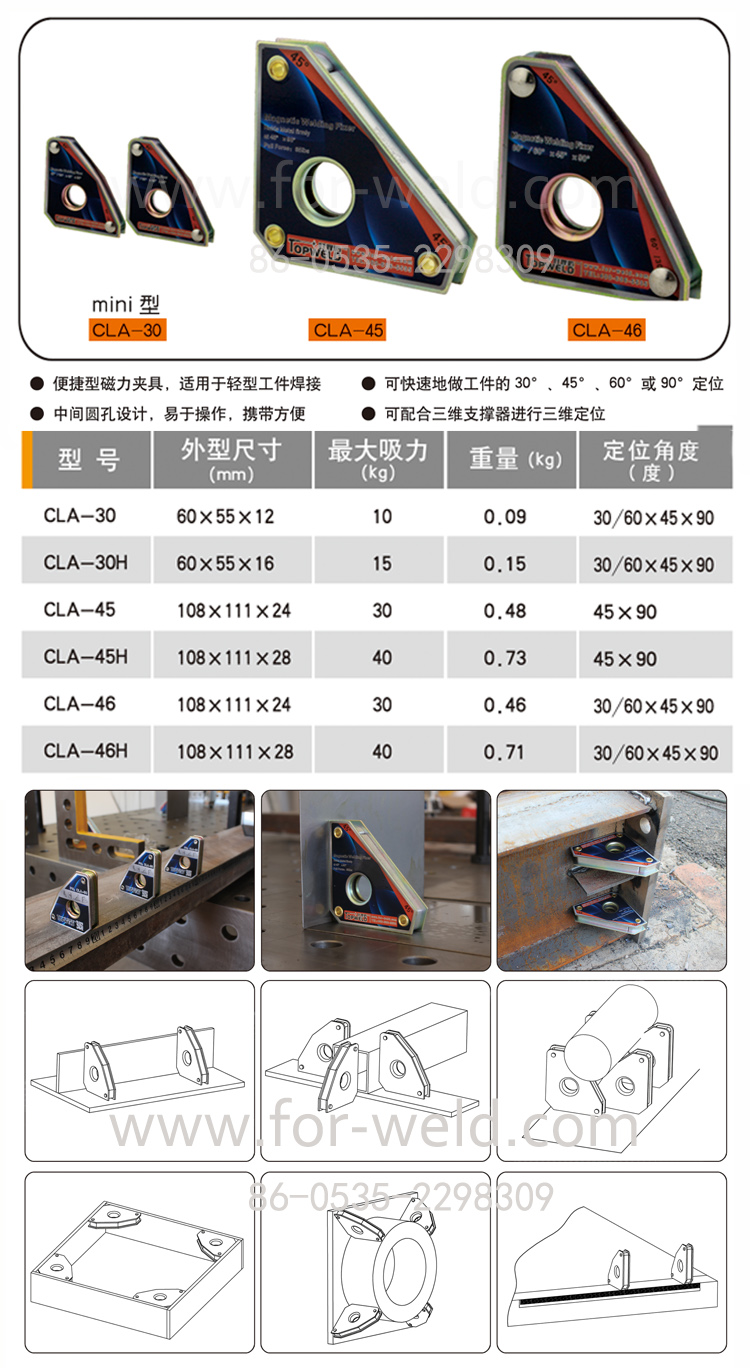 Suitable for positioning and clamping various profiles such as steel plates, round tubes, square tubes, angle irons, etc.