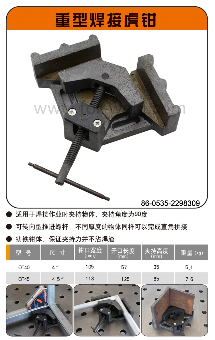 Cast iron clamp body ensures clamping force is not contaminated with welding slag