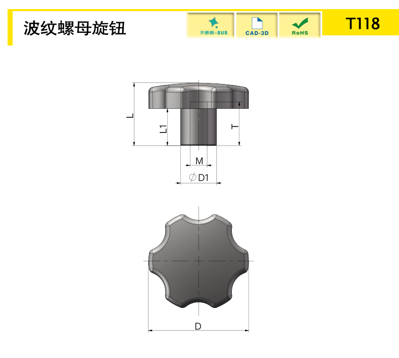 | T118B-D40-M8-M | SUS304 | 40 | 26.5 | 14 | M8 | 15 | Nut | 16 | 1 | download | ||||