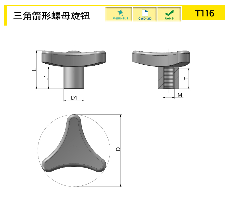 | T116B-D50-M8-M | SUS304 | 50 | 27.5 | 14 | M8 | 15 | Nut | 16.5 | 41.61 | download | ||||