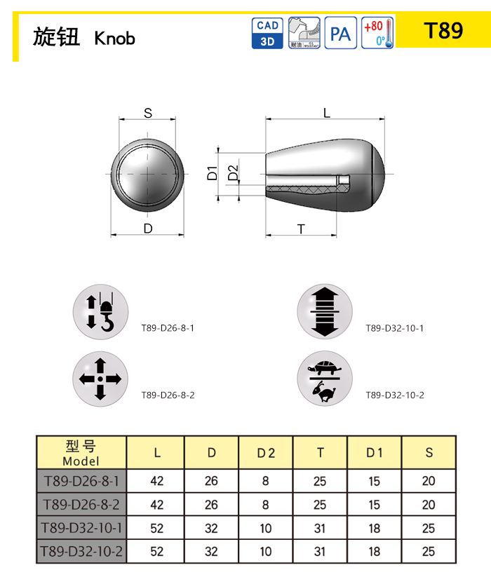 | T89-D26-8-1 | Polyamide (PA) | 26 | 15 | 25 | 8 | 11.4 | download | ||||