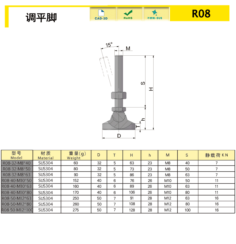| R08-50-M12-80 | SUS304 | 50 | M12 | 80 | 108 | 28 | 1 | 17 | download | ||||