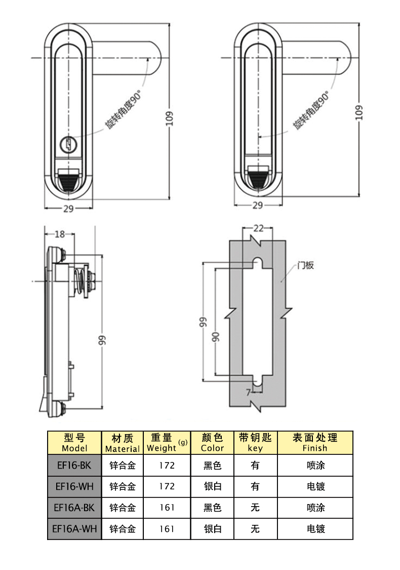 | EF16S-SR | Flat lock | Zinc alloy | 109 | Yes | Electroplating | 1 | download | ||||