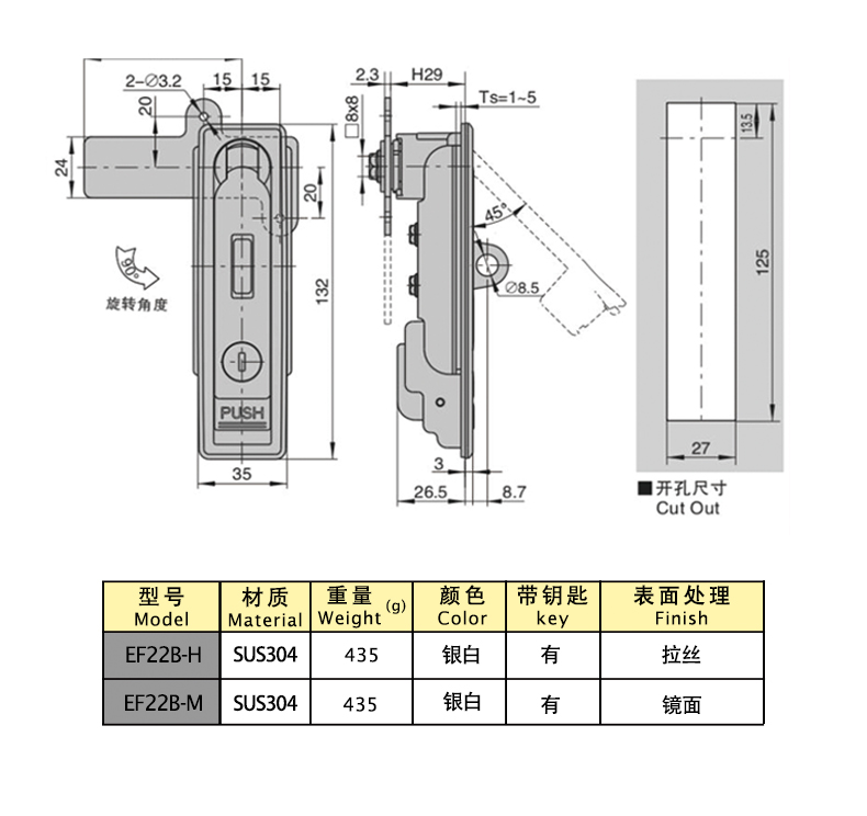 Material: SUS304 stainless steel lock case, handle SUS accessories