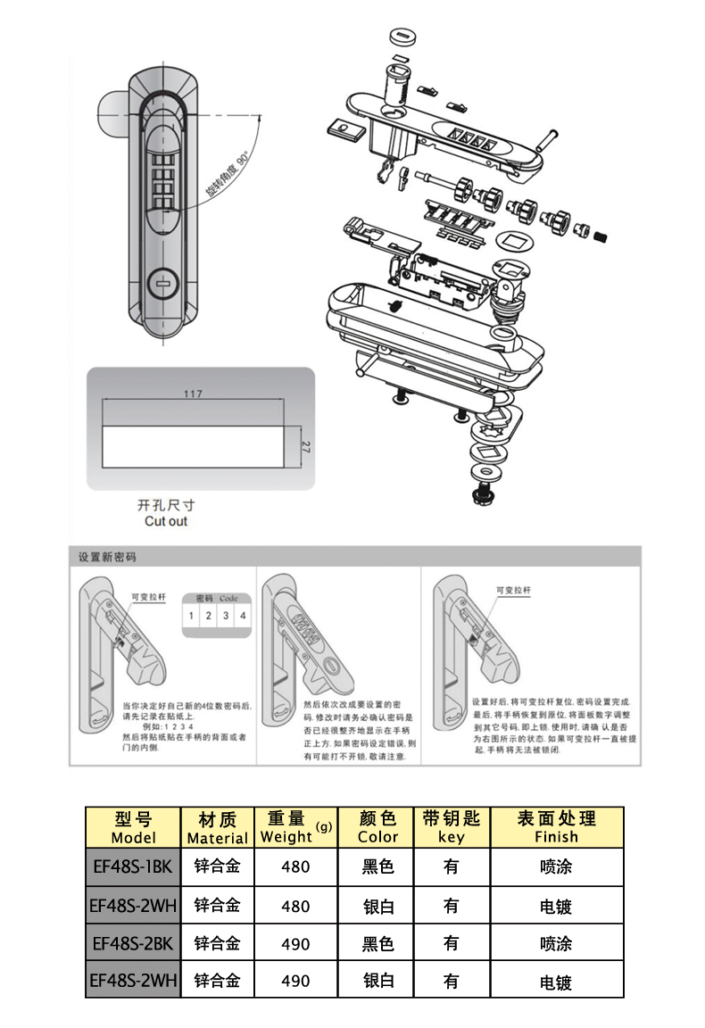| EF48-S-2BK | Flat lock | Zinc alloy | Yes | Spray coating | 1 | download | ||||