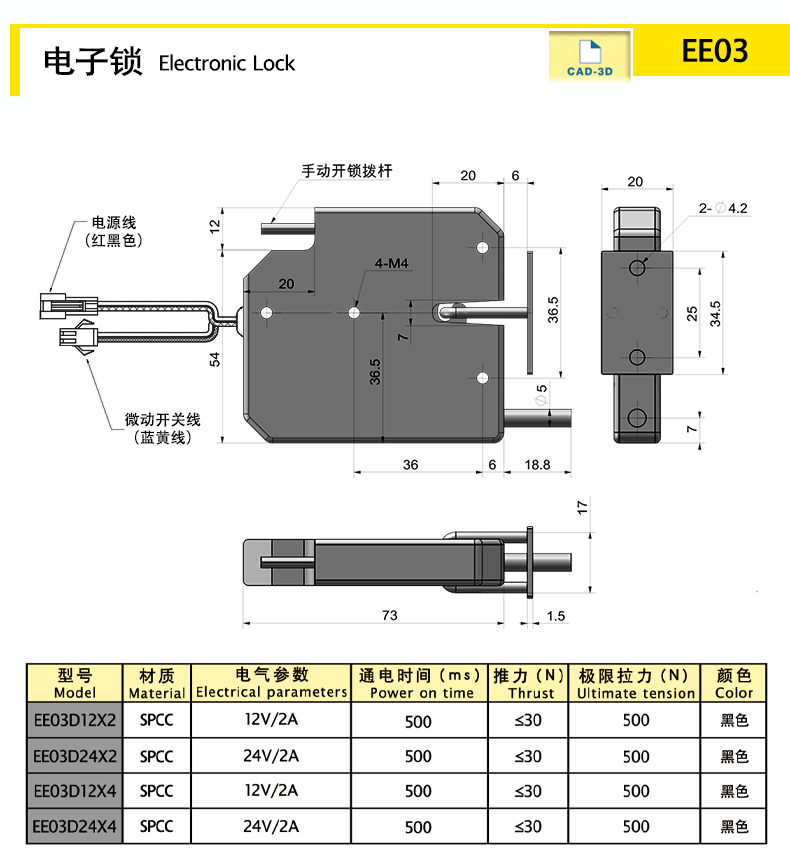 | EE03D24X4 | Electronic lock | SPCC | Black | None | Electrophoresis | 186.01 | download |