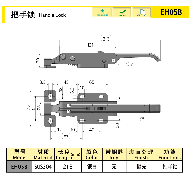 The handle with locking function will not open due to vibration, impact, etc.