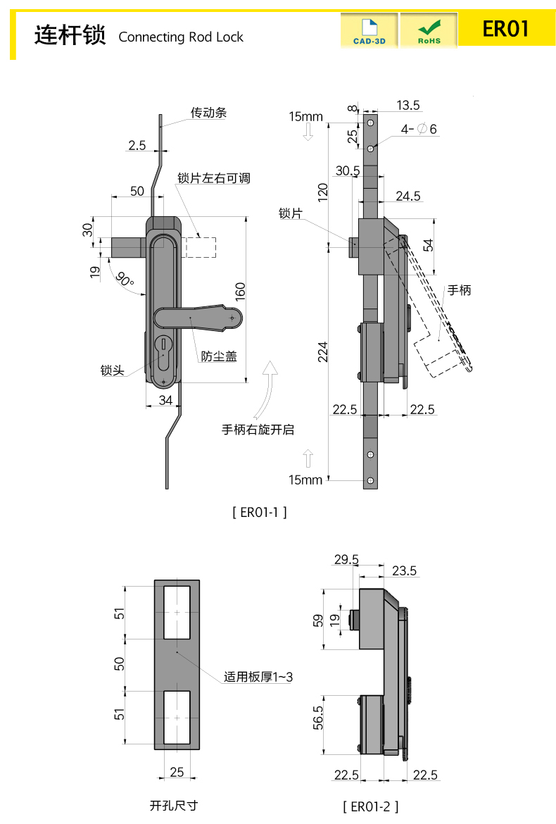 Two closure methods: linkage three-point lock (ER01-1), single point lock (ER01-2), safe and reliable, meeting diverse needs