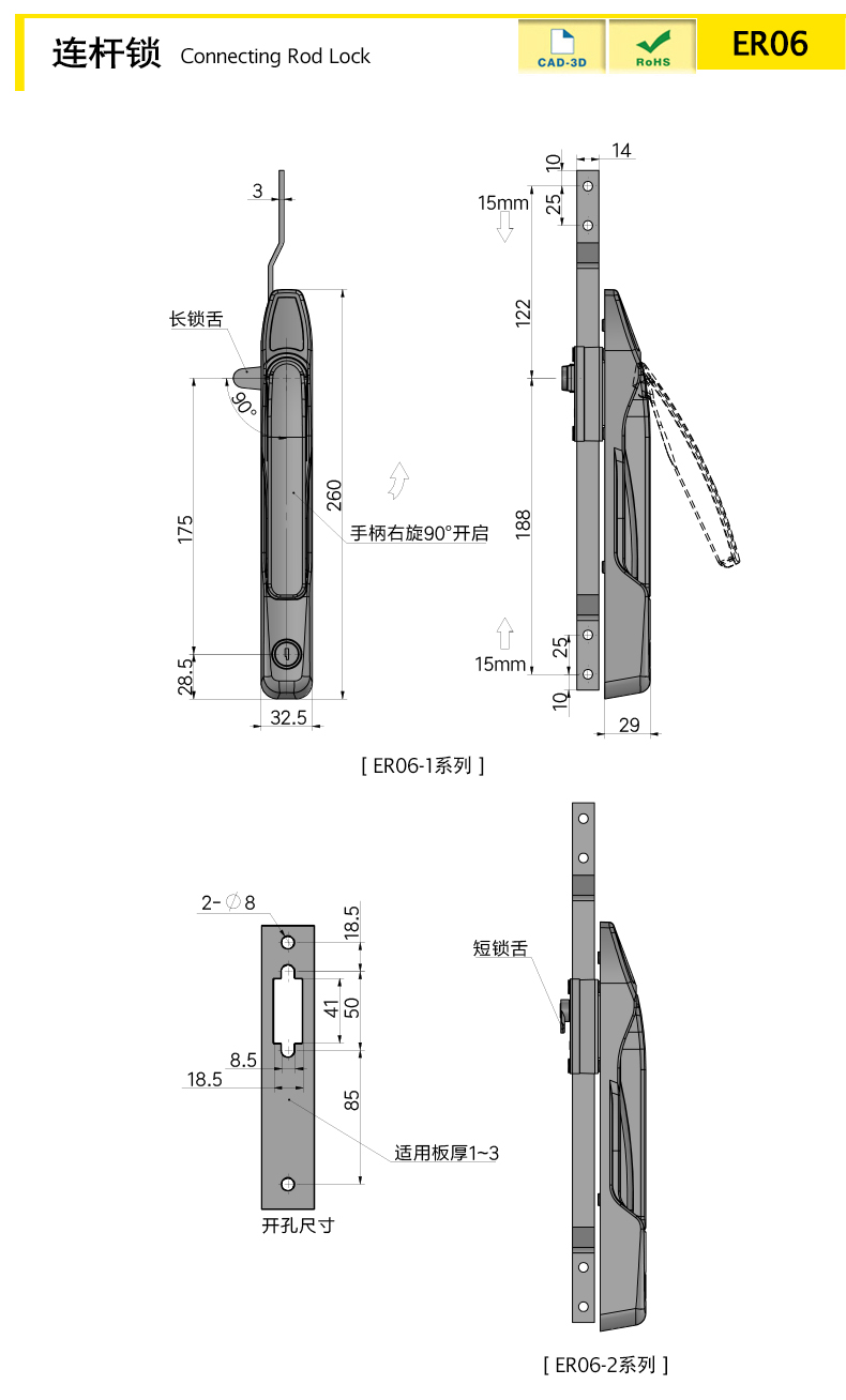 | ER06-1WH | Connecting rod lock | kirsite | 260 | white | have | spray | 800 | download | ||||