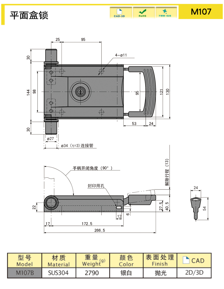 Small flat lock with simple structure and built-in lock core, safe and reliable