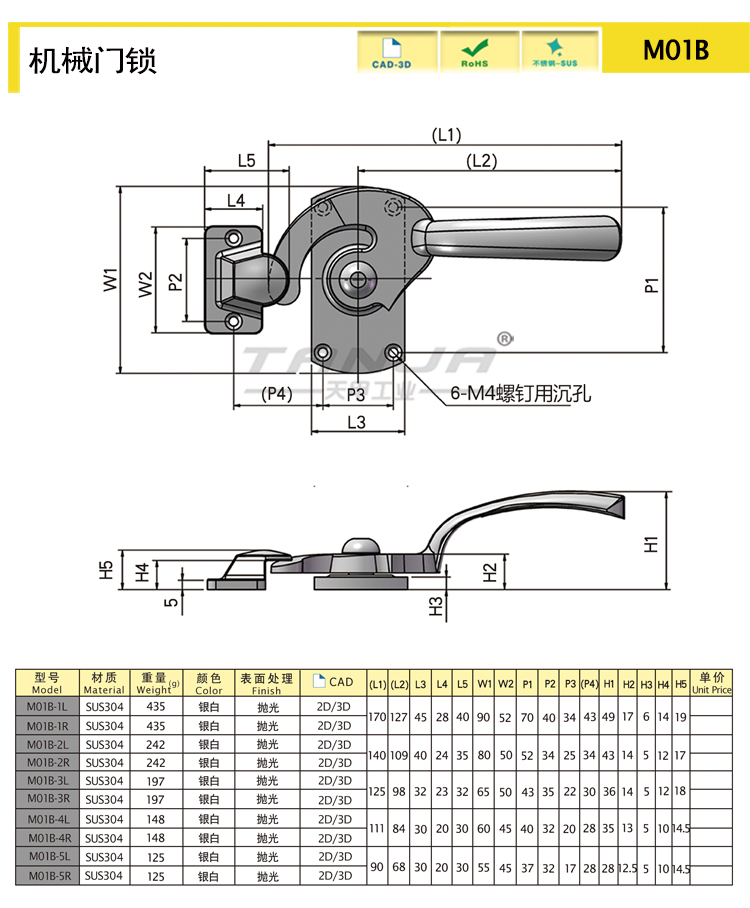 | M01B-4L | Handle lock | SUS304 | Polishing | 153.03 | download | ||||