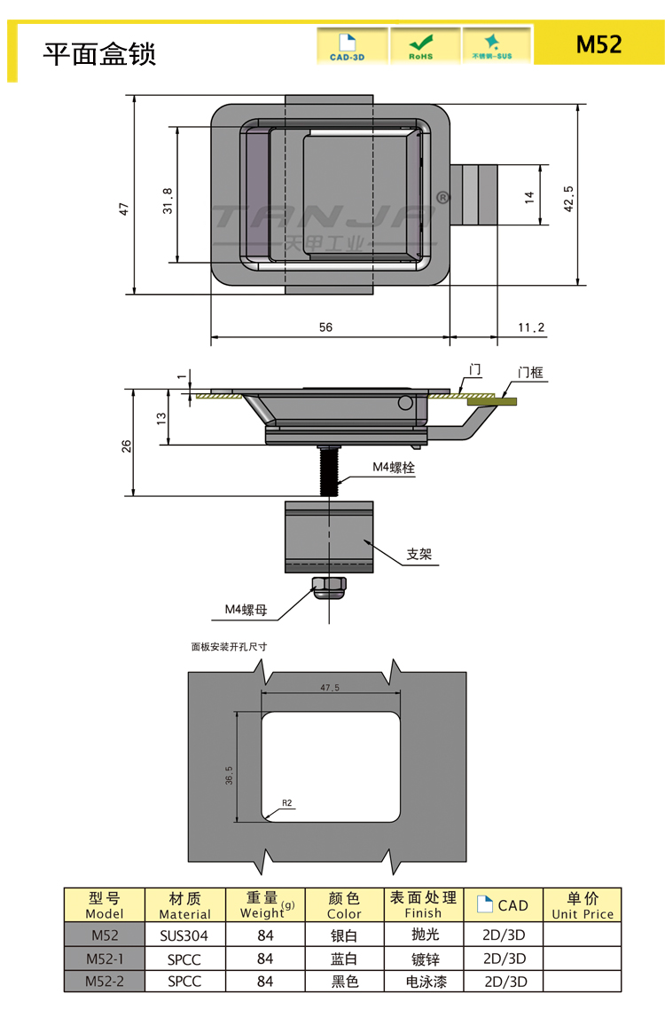 Micro flat lock, suitable for use in small spaces, simple structure, conservative opening and closing. Translation failure: (Unable to observe translation result: invalid response or network problem.)